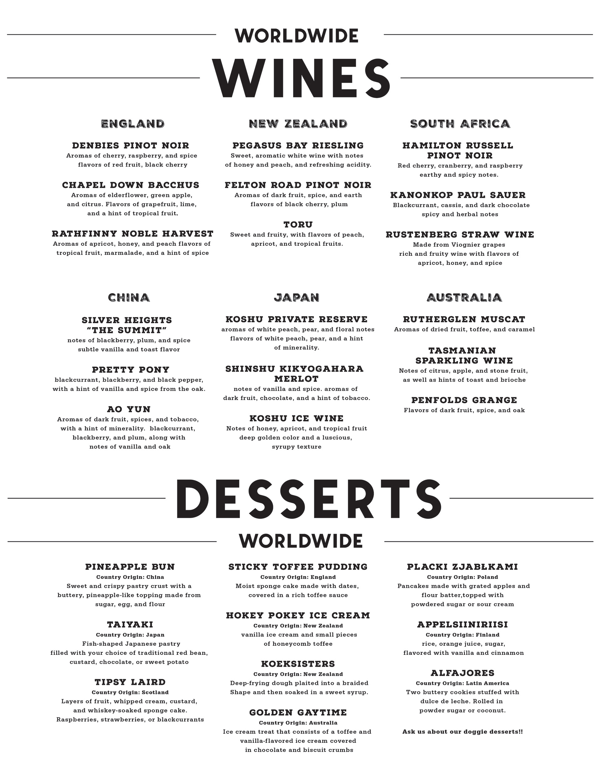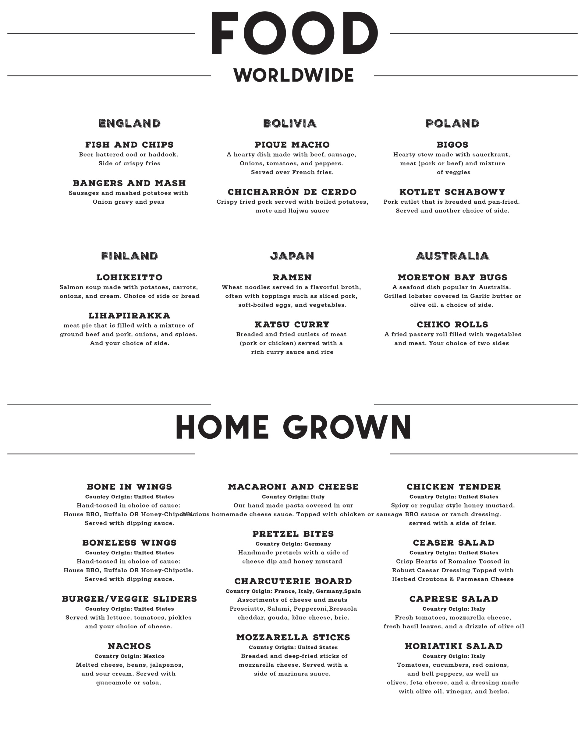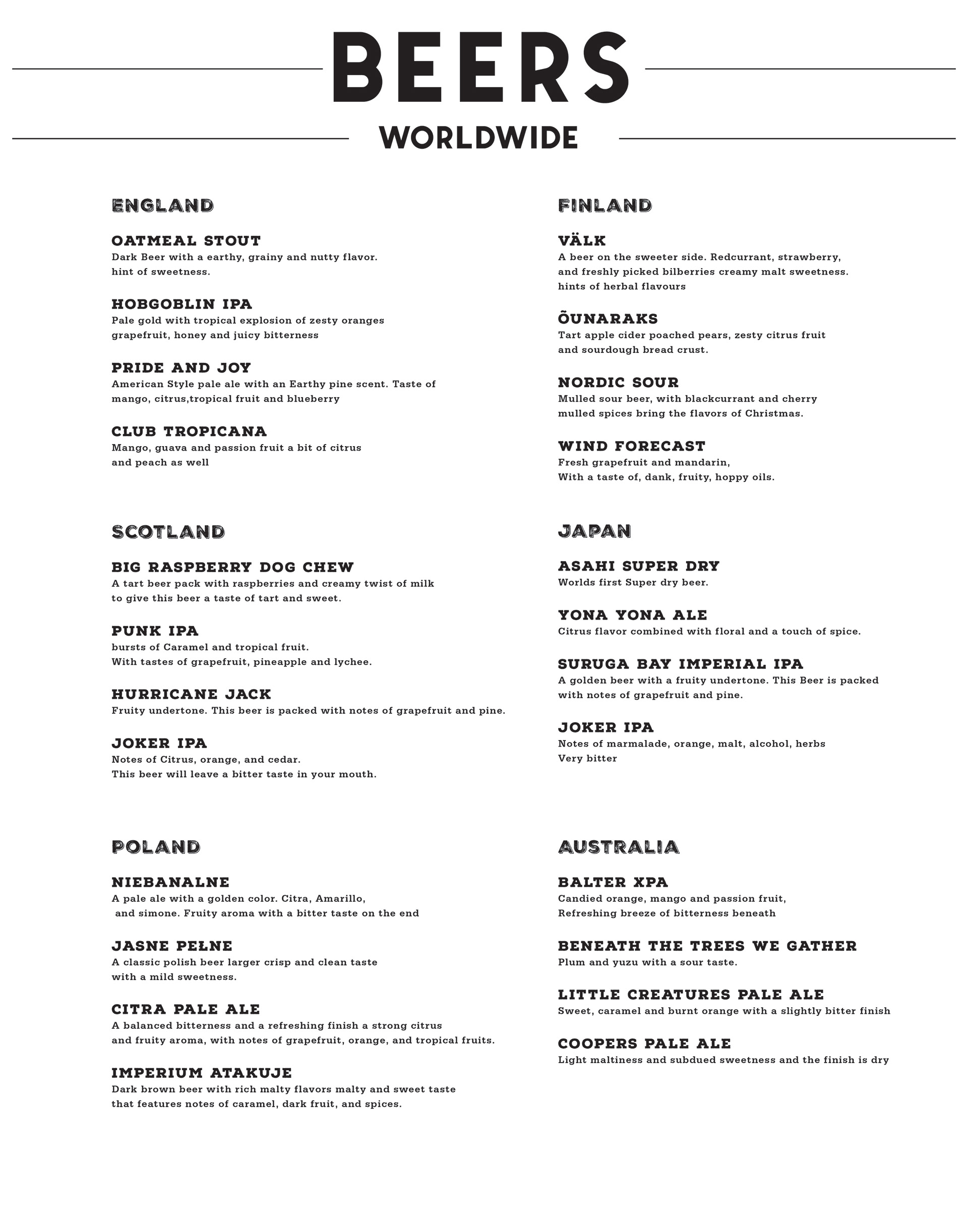 A restaurant created to bring world beers and wines to your tastebuds. As well as cultural foods.