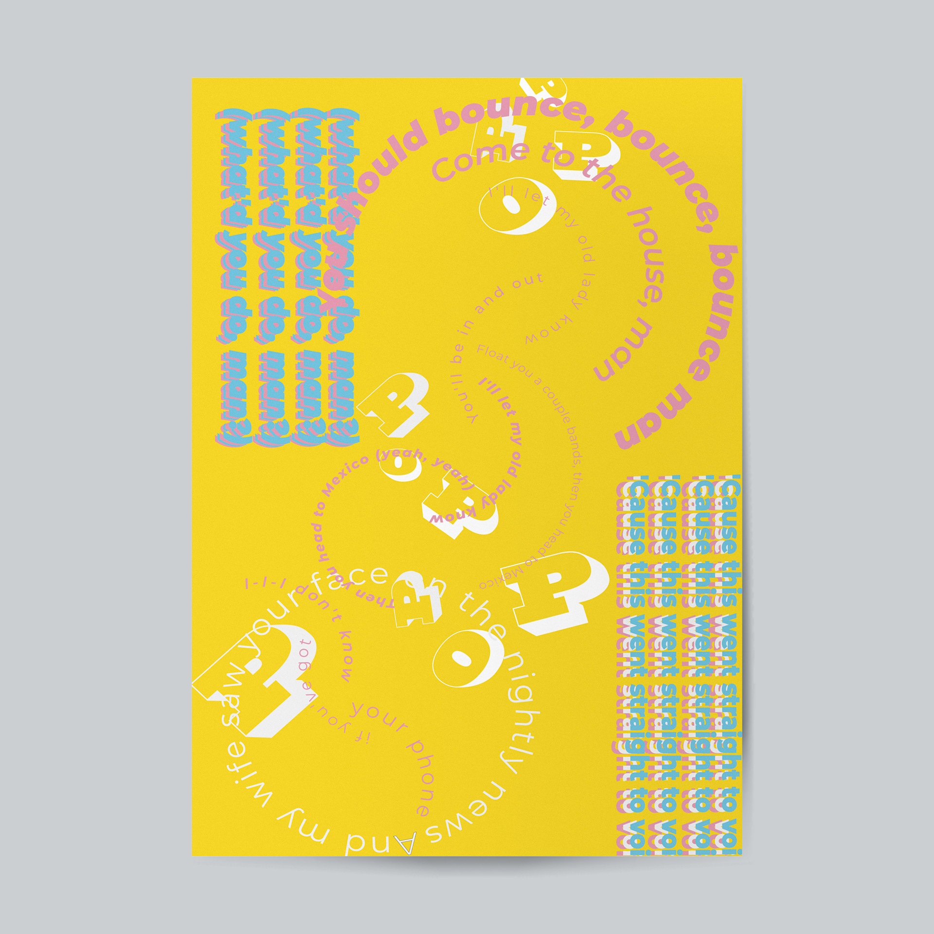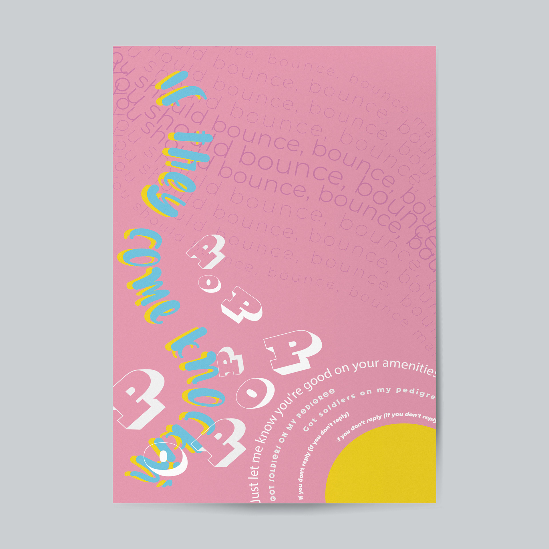 The folded Poster Series project aimed to highlight a song from a band or artist and use different types of typographic elements to make a visually interesting lyric poster, postcard, business card, and advertisement.